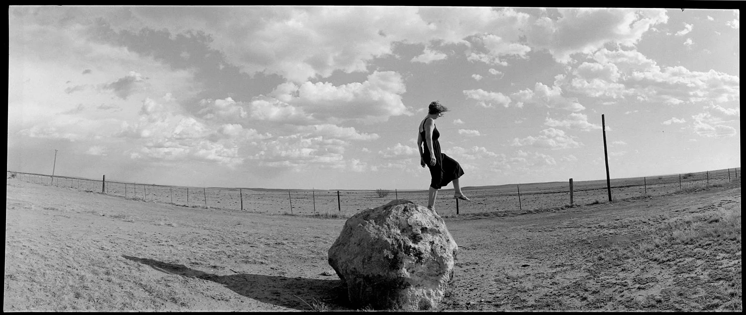 Her cameras of choice are often chosen to fit the inspiration. On heavy rotation are the Noblex 150, a medium format panoramic film camera, a couple of 6x6 square format cameras, a 1914 folding camera, and an assortment of Polaroid cameras. The end goal, whether conscious or not, is to bring the viewer along on her adventures.